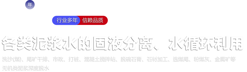 • 洗沙、洗煤、洗礦、打樁、隧道、河道清淤、脫硫石膏、石材加工、金屬礦、尾礦干排等。
